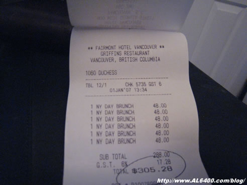 Just looking at that, for $305.28 we could of went to some very exquisite restaurant. I think here in Vancouver it’s mostly sushi buffets where I constantly hear people saying how they save so much money by going to one and similarly most of the time when I dine with these type of people they can barely eat more than what they would normally order from a regular restaurant which would have been cheaper and in most cases would have higher quality food. It’s kind of like shopping at a Costco I guess where it looks like you are saving so much money by buying this large food item when in reality there is no way you can finish it and so you end up wasting it or forcing yourself to eat more than you normally would.