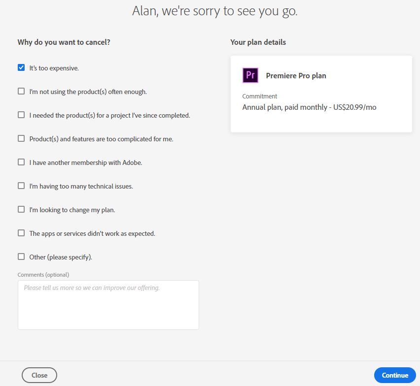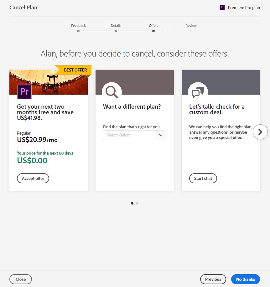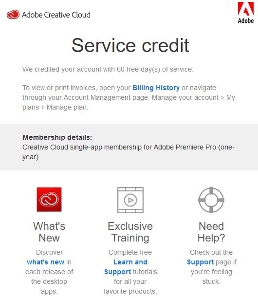 But apparently you can get a special offer during this time. Essentially what you have to do is login to your Adobe creative cloud account and simply go through the process as if you are cancelling your service. Once you get to the offer screen to stay you will be presented with an option where by accepting you will get 60 days worth of free service credit. That could easily be over $40 US for many folks and every bit helps.