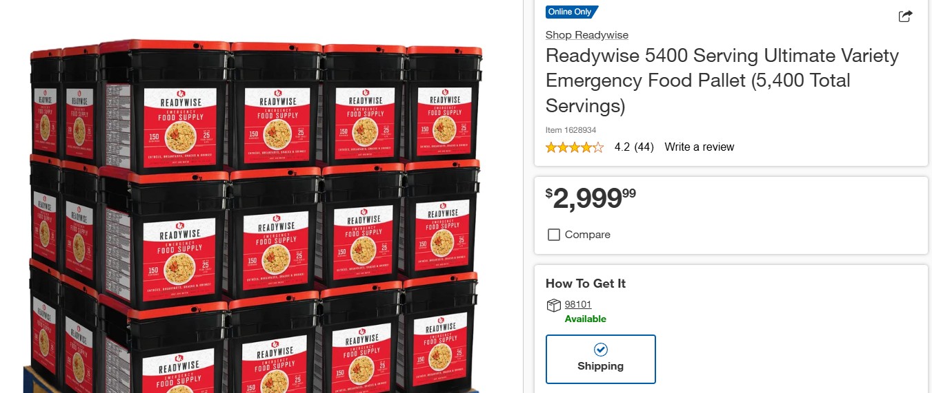 This was kind of odd as recently there were a lot of posts online on how businesses like Costco were selling these emergency food kits of sort called ReadyWise 5,400 Serving Ultimate Variety Emergency Food Pallet. Apparently its $2,999.99 that has freeze-dried entrees, breakfasts, drink, and more. They say this will last you over a year too. The crazy thing was some people were saying they were thinking of getting this more as a way to save money in having to shop for food for the whole year. What a bad idea in my opinion.