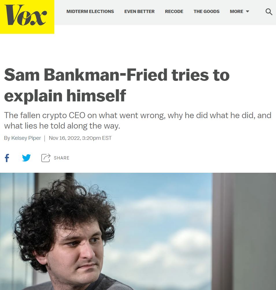 I was reading this intriguing interview on the site VOX where one of its workers got to interview Sam Bankman-Fried and his views when it came to running FTX and how he feels now. It was kind of alarming as to the things he admitted to lying about in an effort to get ahead. Unless he later claims that it wasn’t him that wrote this, the first few bits seems to imply that he said a lot of things for PR purposes such a when talking to regulators.
