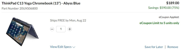 I saw this ThinkPad C13 Yoga Chromebook today where normally it does retail for $779. It seems kind of decent if you actually needed it for work purposes. I personally don’t need it, but look at this price when you enter in a code. It drops the price to about $189 Canadian. Again, that feels like a price error huh? I actually found myself thinking really hard if I could justify it anyway.
